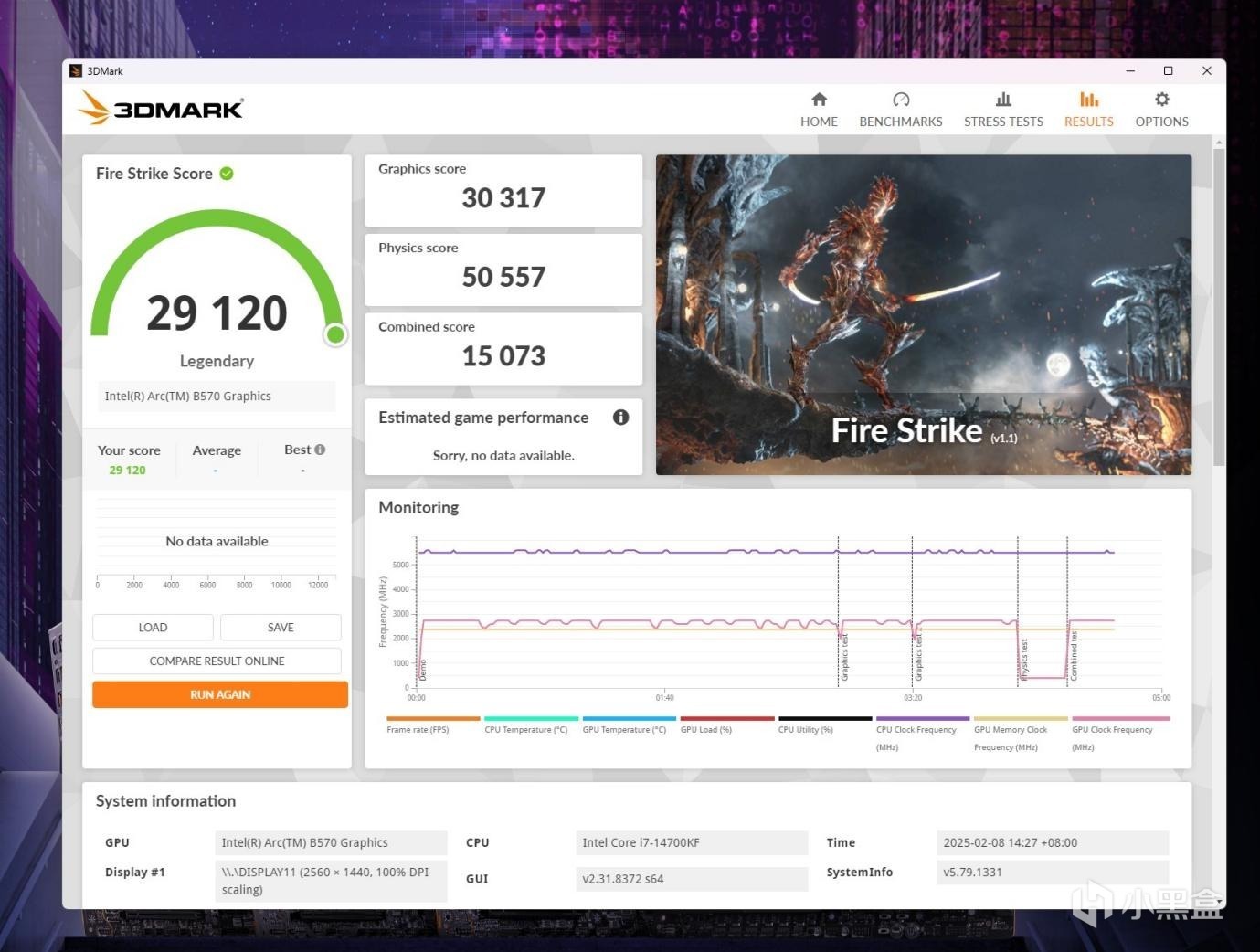 3DMARK Fire Strike測試,總分29120,其中顯卡得分30317。
