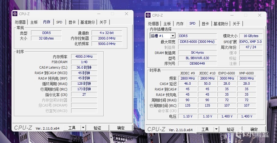內存的分數高達46.4萬分,這是因爲我將內存超頻到了8000MHz,這款內存支持XMP和EXPO6000MHz,是款宏碁的CL28的低延遲內存,同時也支持可以手動超頻到更高的頻率使用。