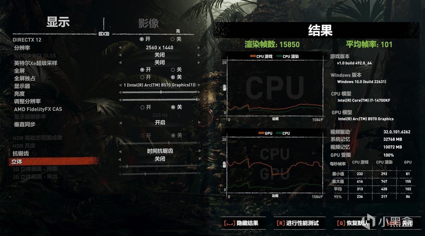 古墓麗影.暗影,2K分辨率高畫質,不開啓XeSS,平均幀率101。