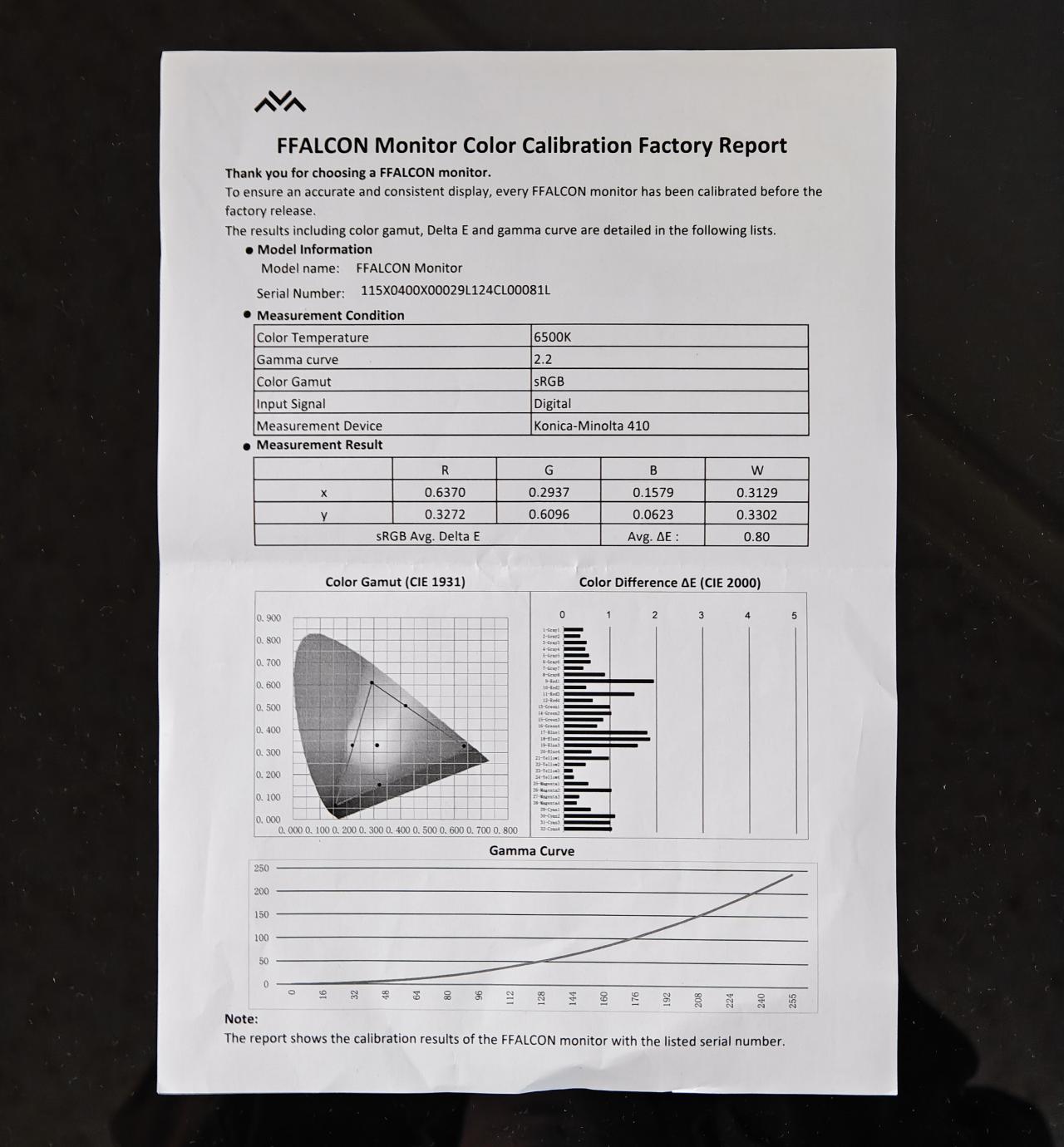 U6還支持HDR600,峯值亮度600尼特,10.7億廣色域,98%的P3色域,99%的srgb色域,顯示器出廠逐臺校色,從出廠報告能看到Delta E爲0.8,遠低於2。