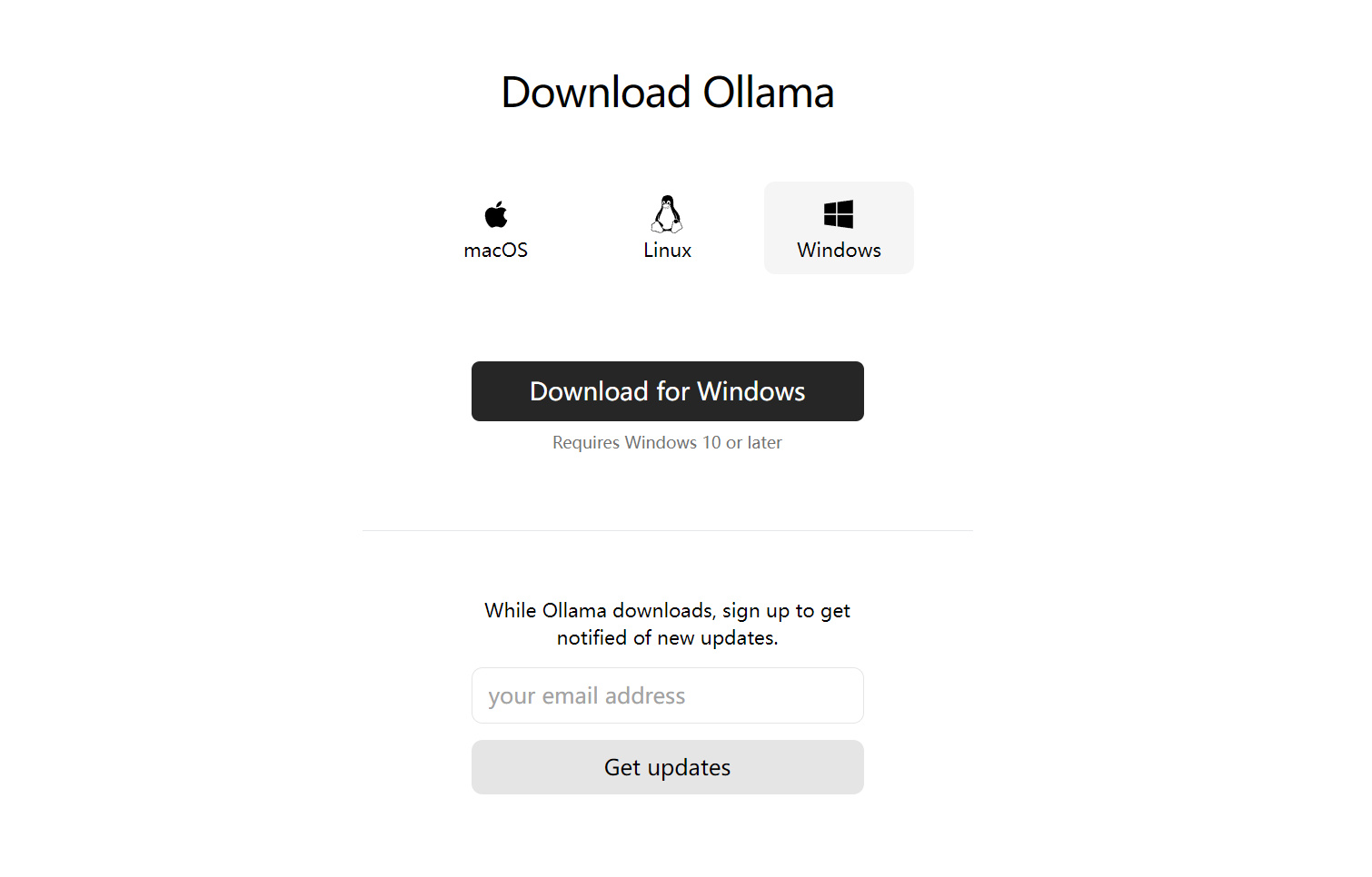 比如我使用RTX5080金属大师OC显卡,它的显存大小是16GB,那么就选择14B大小的量化DeepSeek-R1模型。首先我们得下一个ollama框架,打开ollama官网,点击下载windows客户端(系统至少是windows10及以上)。
