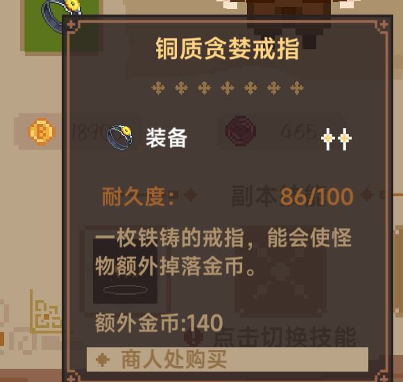 因为随时会出现的怪物玩家还需要通过装备来获得更好的游戏体验。而装备不仅包括手中的武器,还有一些护符之类的道具,有些甚至还能获得开门营业时候金币增多的效果。