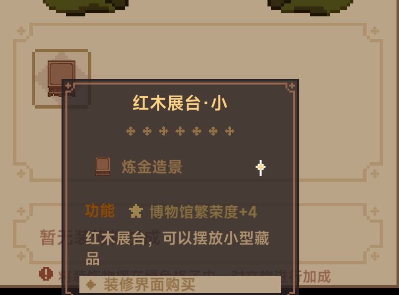 游戏的宣传视频中我们能看到游戏到后期博物馆会被装修的非常好看,而这无疑需要你对博物馆的内容进行一个合理的安排,很多装修的物品都是可以在【傀儡折】处购买的。