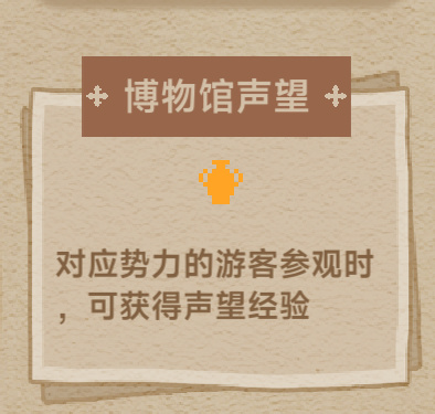 每一个势力的游客在参观之后都会获得一定的声望,而声望等级又会对应到每一个势力的技能。有一些技能是帮助你快速的和对应势力的游客讲解,有一些则是指定势力得到效果的升级。在完整体验下来,每一个势力其实都是有很大的区分,技能方向的不同可以看出制作组并不是在简单的敷衍了事。