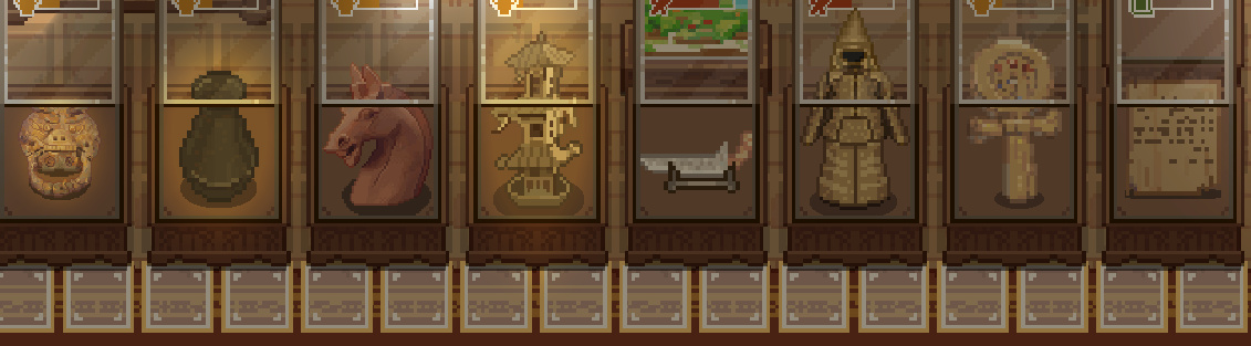 在说开门营业之前,其实先要说的是如何装修博物馆,博物馆中的内容分为装饰性和功能性,最为基础的是展柜,游戏的产品可以分为多种大小,这使得玩家会有多个不同的展示柜需要选择。