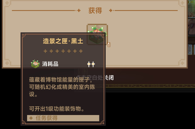 除此之外,如果需要高等级的装饰物,是需要游戏的另一个系统炼金才能获得的。前期玩家完成任务也可以通过造景之匣获得装饰品,只是等级一般不会太高。