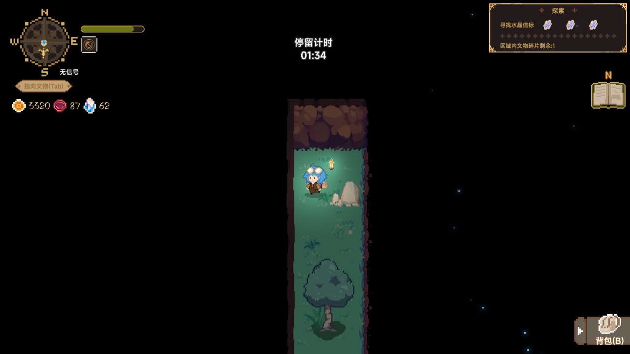 比如刚开始的遗迹外层。玩家在进入之后会受到现实的影响,在有限的时间中探索整个空间。而为了探索玩家需要通过手上的稿子来挖掘原本被岩石掩盖的地方。
