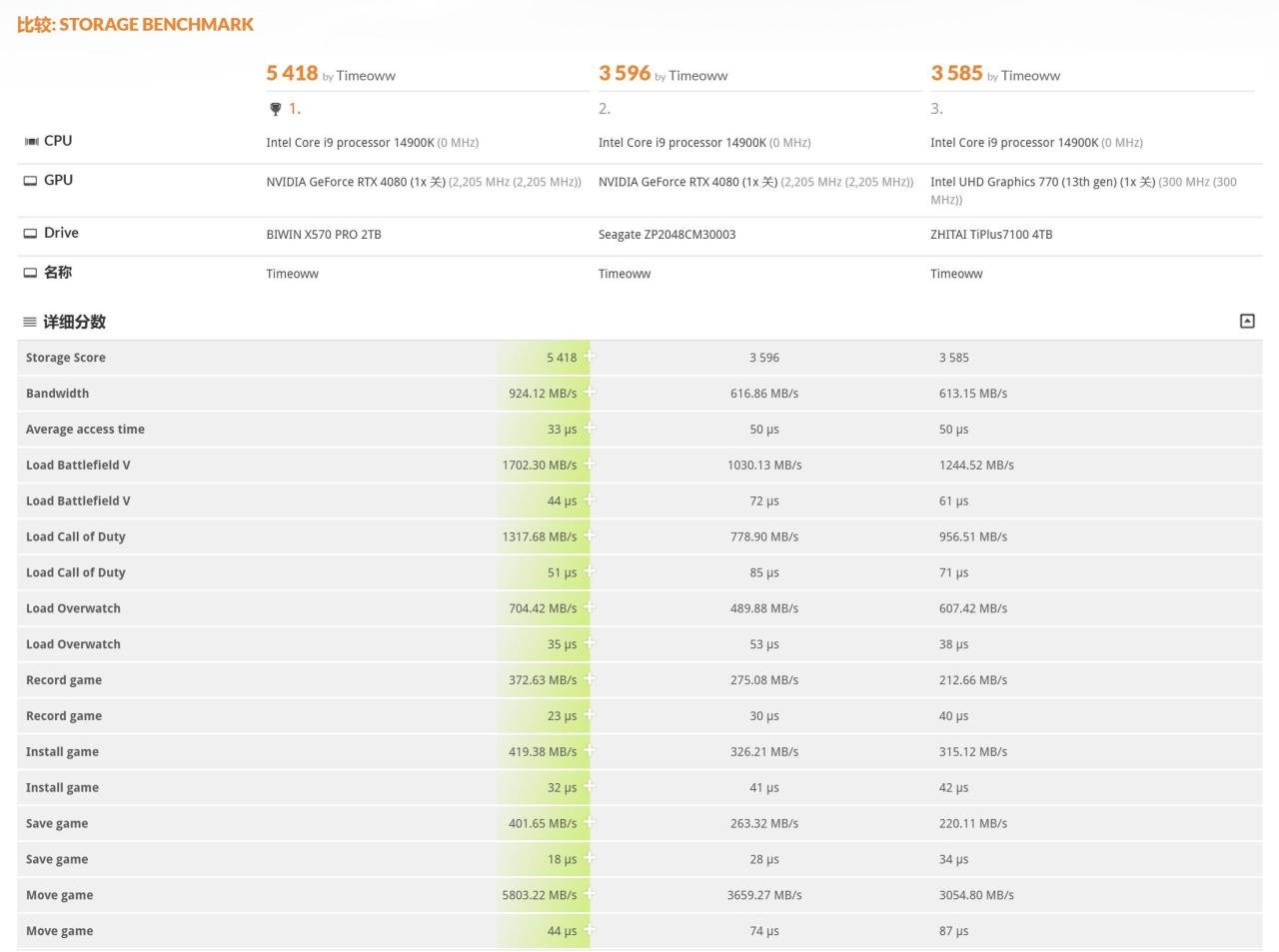 对比前不久我测试过的2TB旗舰级PCIe4.0固态硬盘,提升幅度达到了50%,无论是存取时间、带宽等各个项目上都要领先许多。