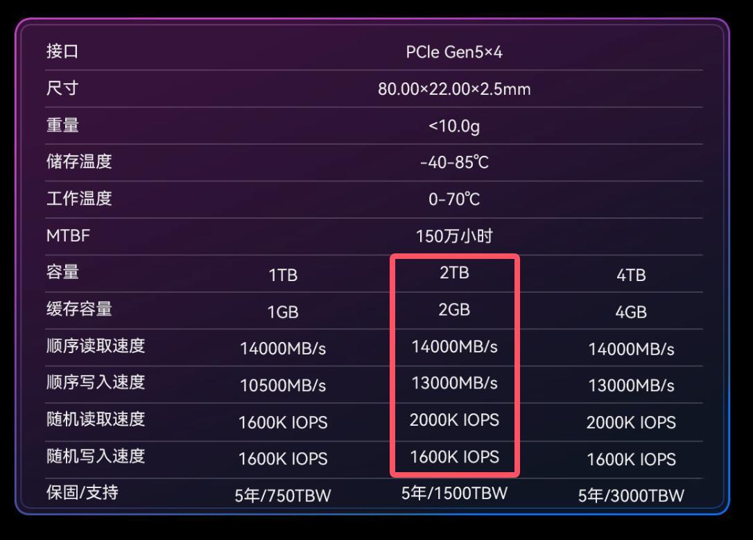 其独立DRAM芯片具备2GB容量(2TB版本),配合SLC模拟缓存,低延迟快响应卡顿少,官方宣称可以达到2000K IOPS和1600K IOPS的随机读写速度。