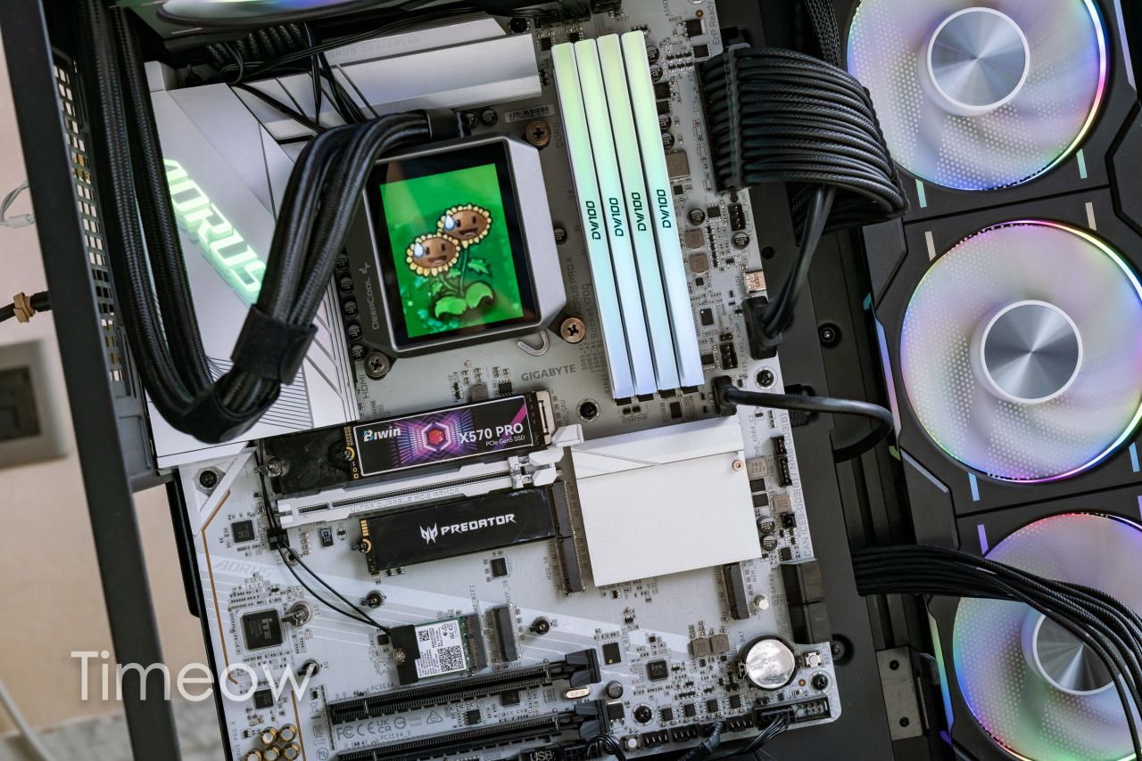 以往,PCIe5.0固态硬盘的发热量很高,所以在佰维X570PRO天启的测试中,我是有心理预期的,主板自带的金属散热器我也用上了: