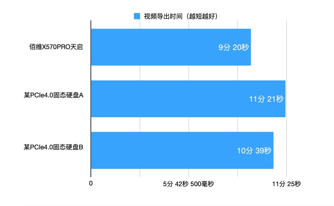 根据Media Encoder的工作日志汇总上表,当项目素材包存放在佰维X570PRO天启上时,项目的转换速度最快,相比另外两款PCIe 4.0的固态硬盘,最多可以节约2分钟,效率提升在17%以上。如果项目中充满更多轨道、更多的包装和特效,佰维X570PRO天启这种PCIe 5.0的固态硬盘会极大提升咱们的工作效率。