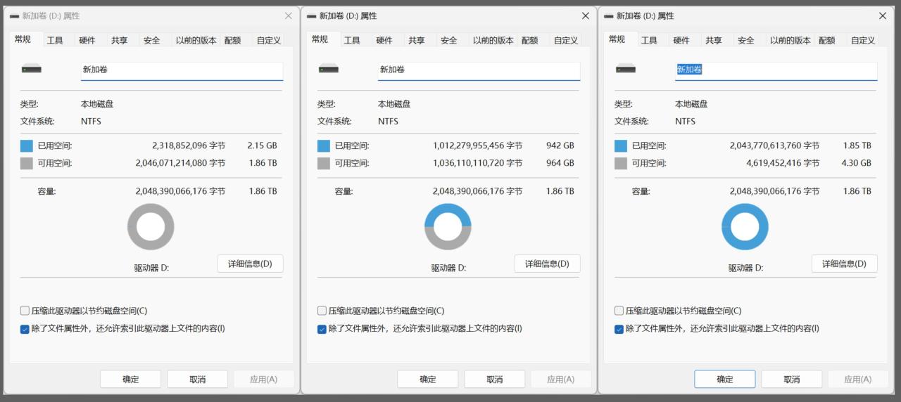 将其插到电脑上后,在磁盘管理处进行格式化操作,完成后系统显示其可用空间为1907.71GB:和佰维推出的大多数其他型号SSD一样,佰维X570PRO天启使用了足容设计,可用容量要比市面上很多的其他固态硬盘产品多一些(每TB约多出22GB),多出来的容量至少可以存一个3A游戏或一个deepseek 32b的蒸馏模型。挺良心!