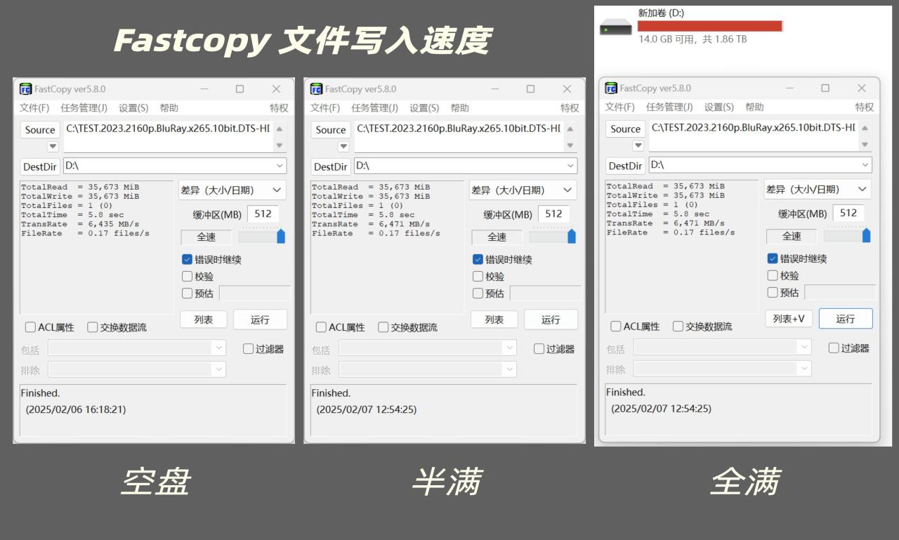 满盘状态下(预留了49GB),写入速度在6471MB/s。