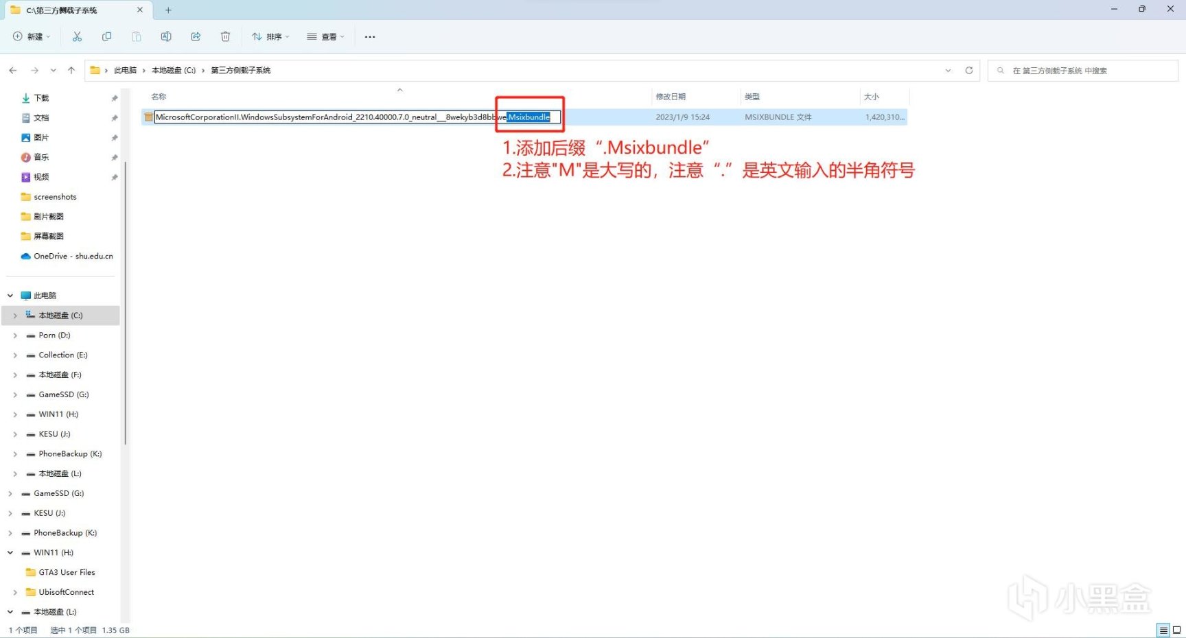 侧载包改名注意事项:只要注意.Msixbundle扩展名,扩展名前的文件名一点都不要紧