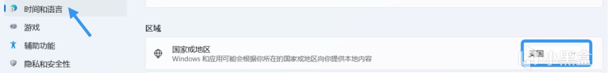 如果打开链接显示为“此应用在你的设备上将无法工作”或者手动在Microsoft Store搜索没有搜索到Amazon Appstore,着急的话,直接参考下面第3步的侧载下载;或者更改Windows商店地区为美国(可能更改完有延迟,几个小时内还是搜索不到,没法从商店下载)——如下图:在设置里“语言区域”把区域调成美国(改地区是为了在应用商店直接下载Amazon Appstore捆绑的android 子系统,全部安装操作完毕以后可以改回来,也可以不改)。
