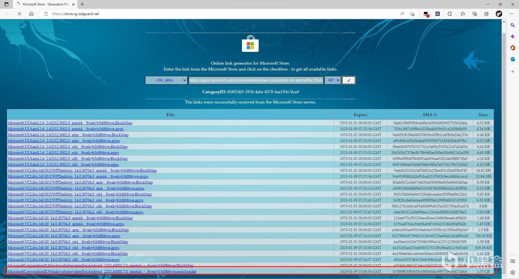 3. 如果卡在Windows商店下载Amazon Appstore这一步,可以去Windows商店应用的第三方侧载网站解析子系统UWP应用,单独导出子系统的纯净安装包(甚至比Windows的Microsoft store里带有amazon应用的子系统干净)