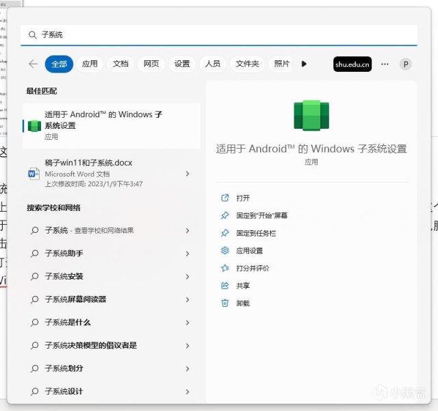 Win+S搜索子系统