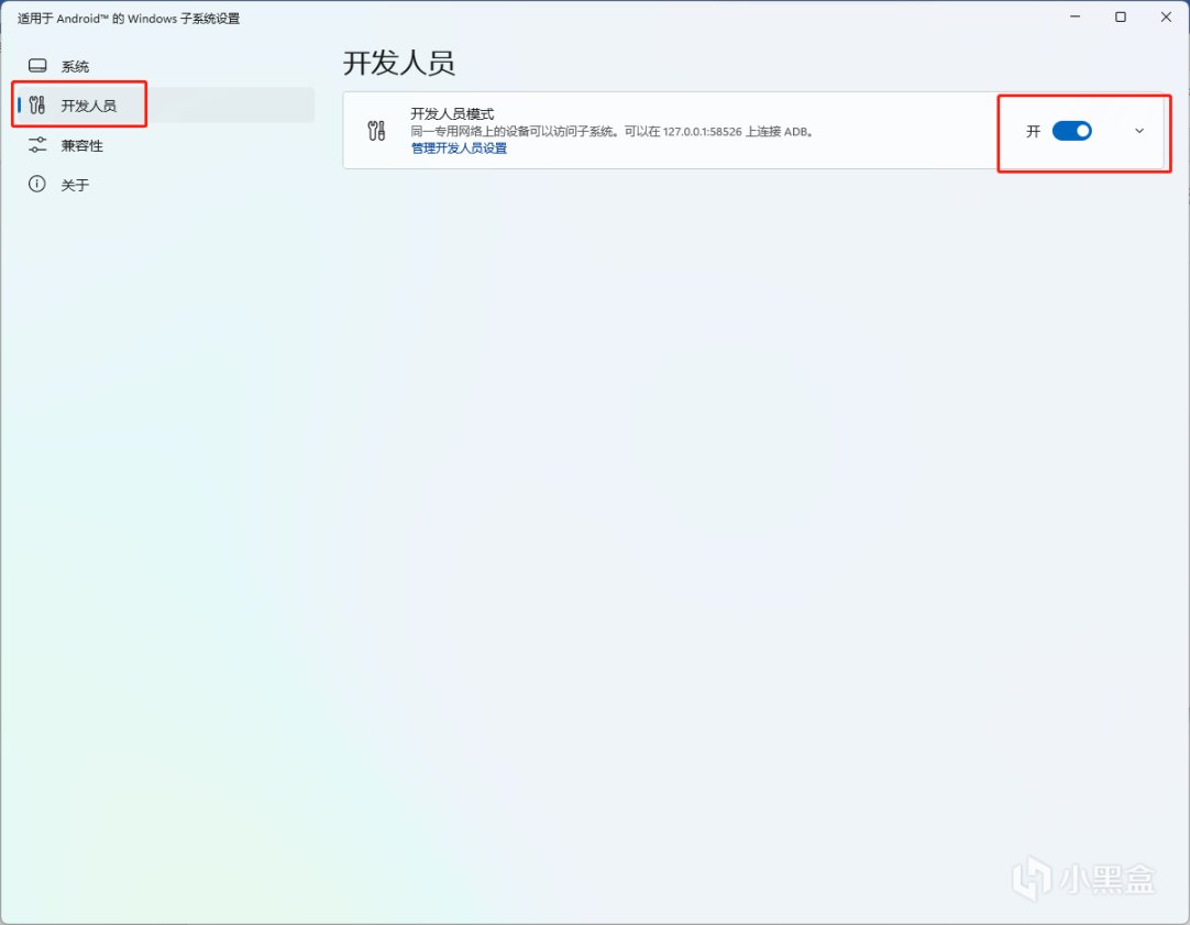 1. 打开子系统设置中的开发者选项
