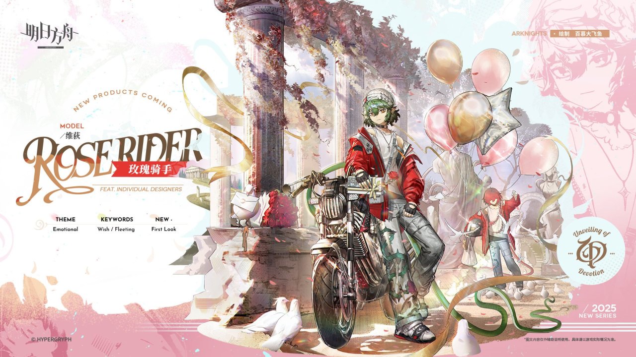 待予花冠系列新款/玫瑰騎手。維荻在爲他人傳遞愛意時的裝扮。整體風格休閒隨意,紅色的外套、牛仔褲上的圖案都與節日的玫瑰相得益彰。