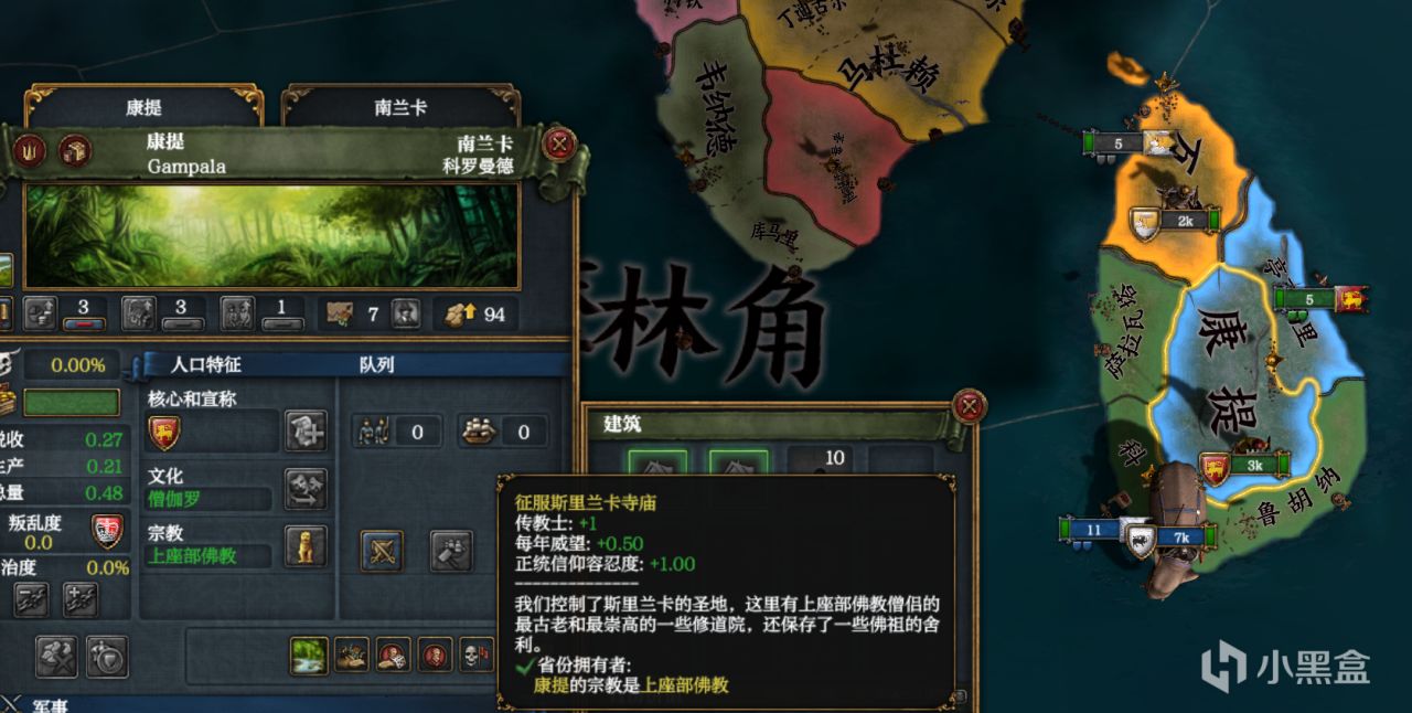非欧陆风云4玩家估计都没有听说过康提这个小国,康提在这里: