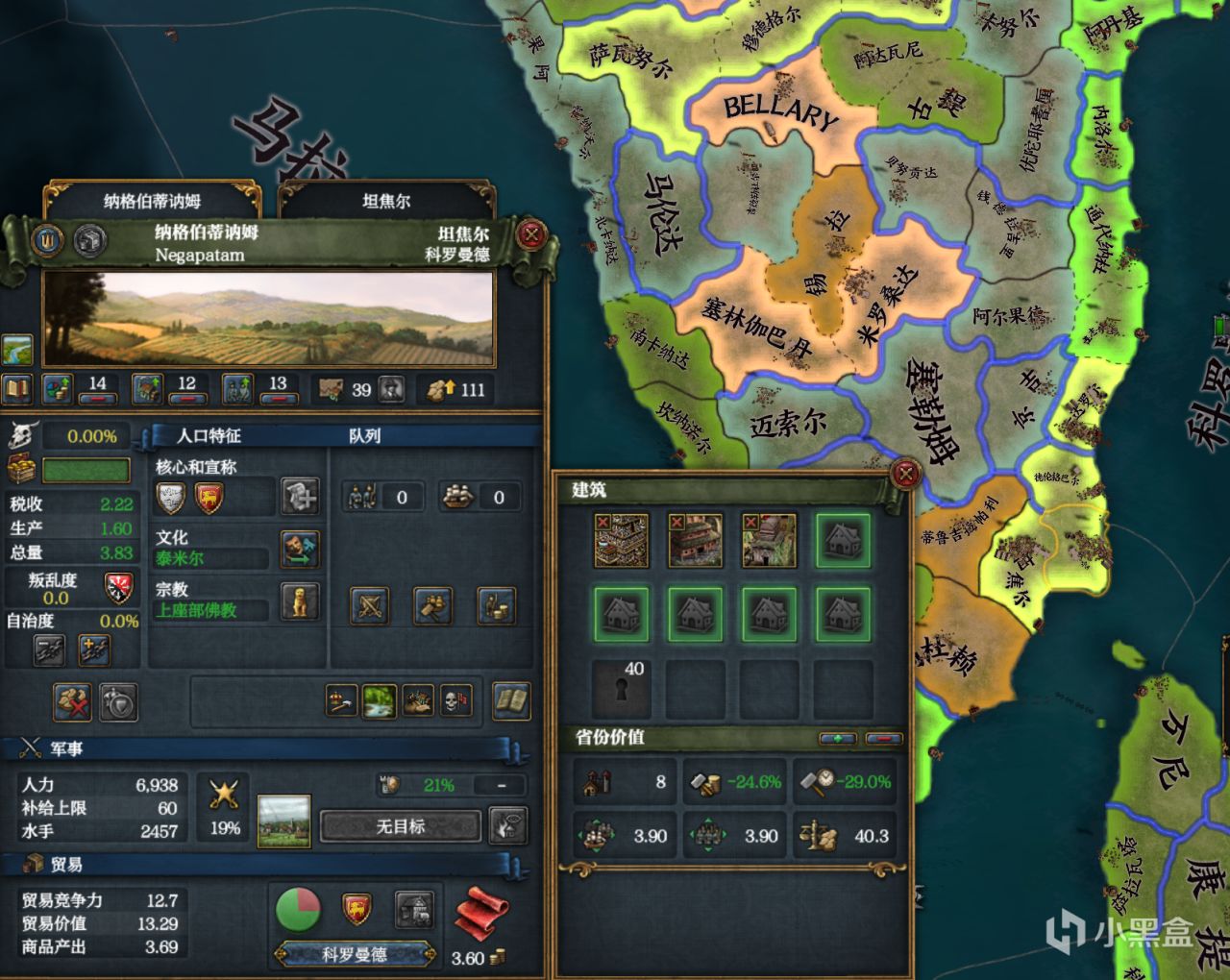 其实贸易方面的加成还不错,游戏中逐渐垄断科罗曼德贸易区后,贸易收入还是很显著的。