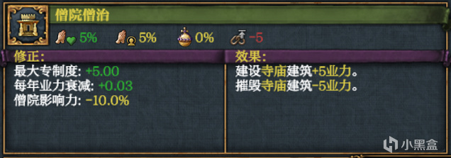 游戏中也可以把下面这个特权给上,后期没附庸可以收核了,大吃一波地后批量造庙把业力拉回来,但是前中期没那么多钱,作用有限。