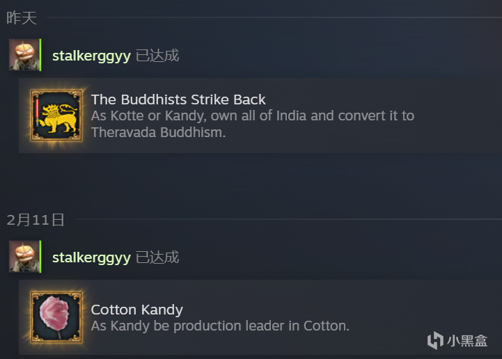 成就“佛教徒反击战”正是在这个背景下,要求康提不但占领整个印度半岛,还要把佛教传遍各处,康提自身虽然多一个传教士,但理念偏贸易,在宗教、战争、扩张方面几乎没有加成,且该成就不能变身,难度还是比较高的。另一个成就“棉花(candy棉花糖)上的康提(kandy)”则是P社传统谐音梗成就,要求成为全球棉花产量最高的国家,印度有很多产棉花的省份,在统一印度半岛的过程中自然会达成。