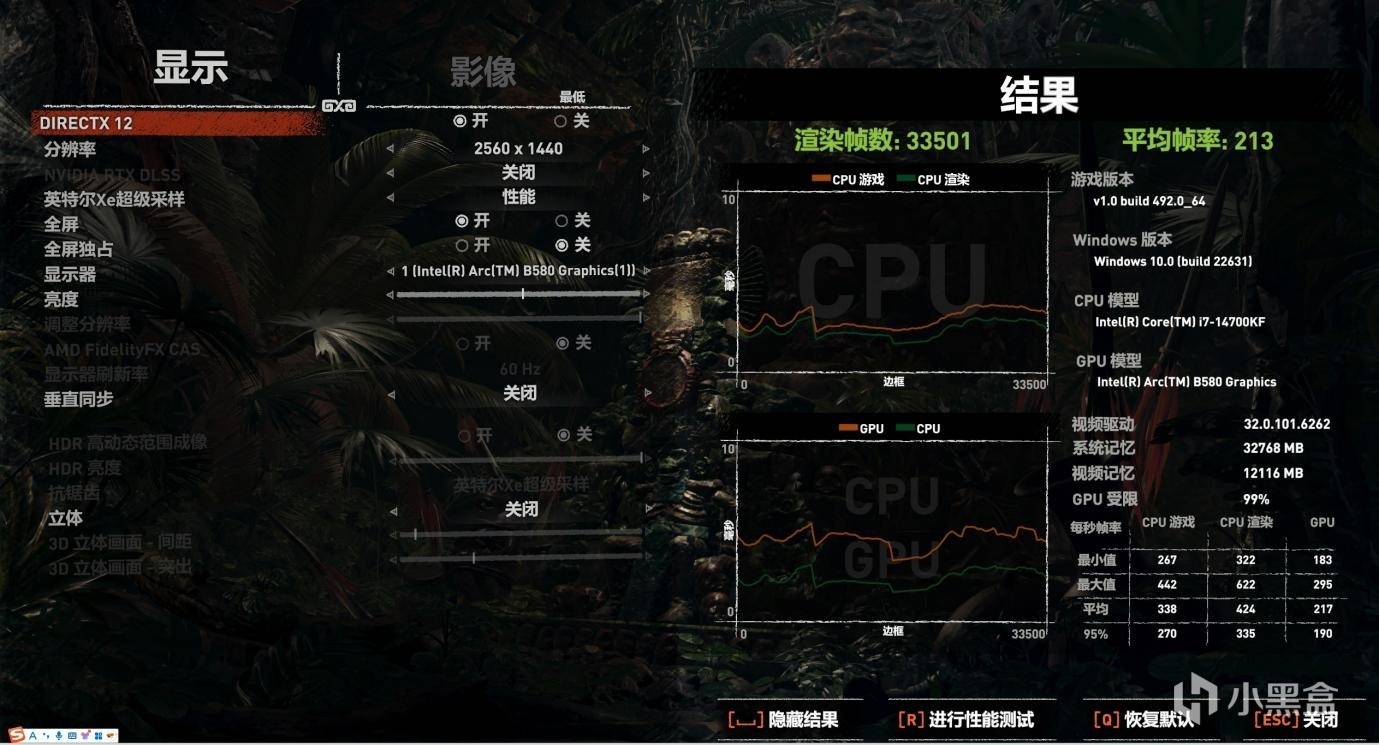 開啓XeSS後,平均高達503幀,這個提升還是很多的。