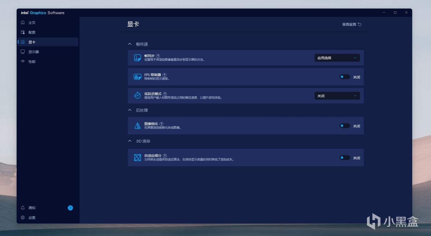 同時,英特爾顯卡的軟件也有了更新,畫面更加友好易用。左側分爲主頁、配置、顯卡、顯示器、性能幾個分項,右側可以進行各種設置和配置功能。