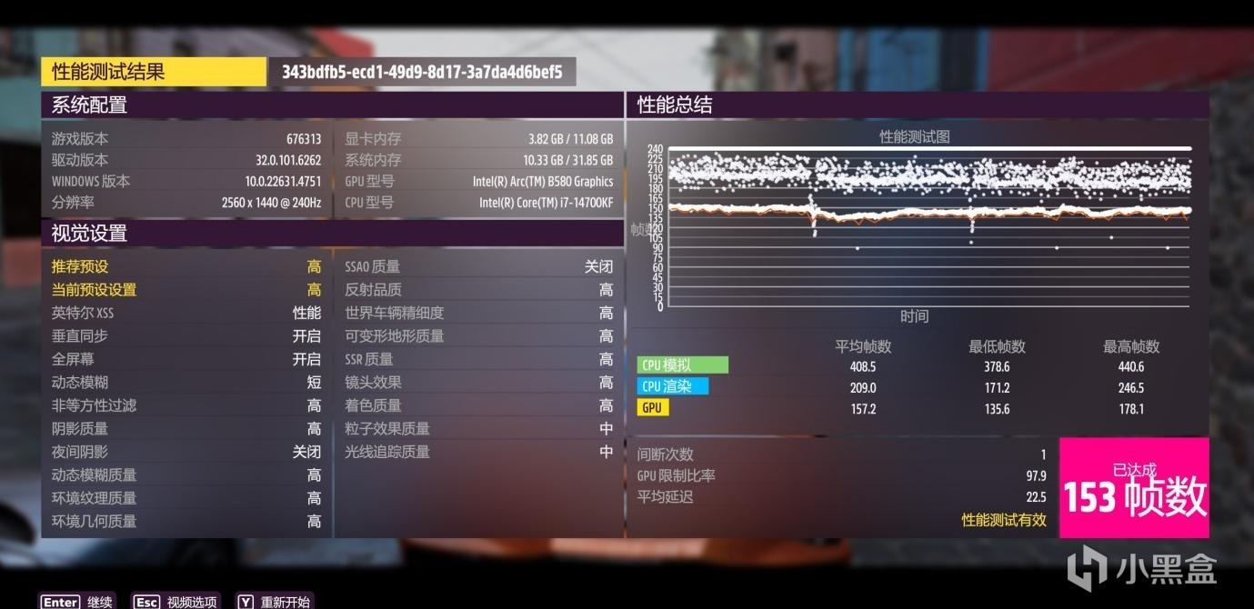 開啓XeSS,達成153幀。這個地平線5一貫如此,無論是DLSS,還是FSR,都幾乎沒有影響。