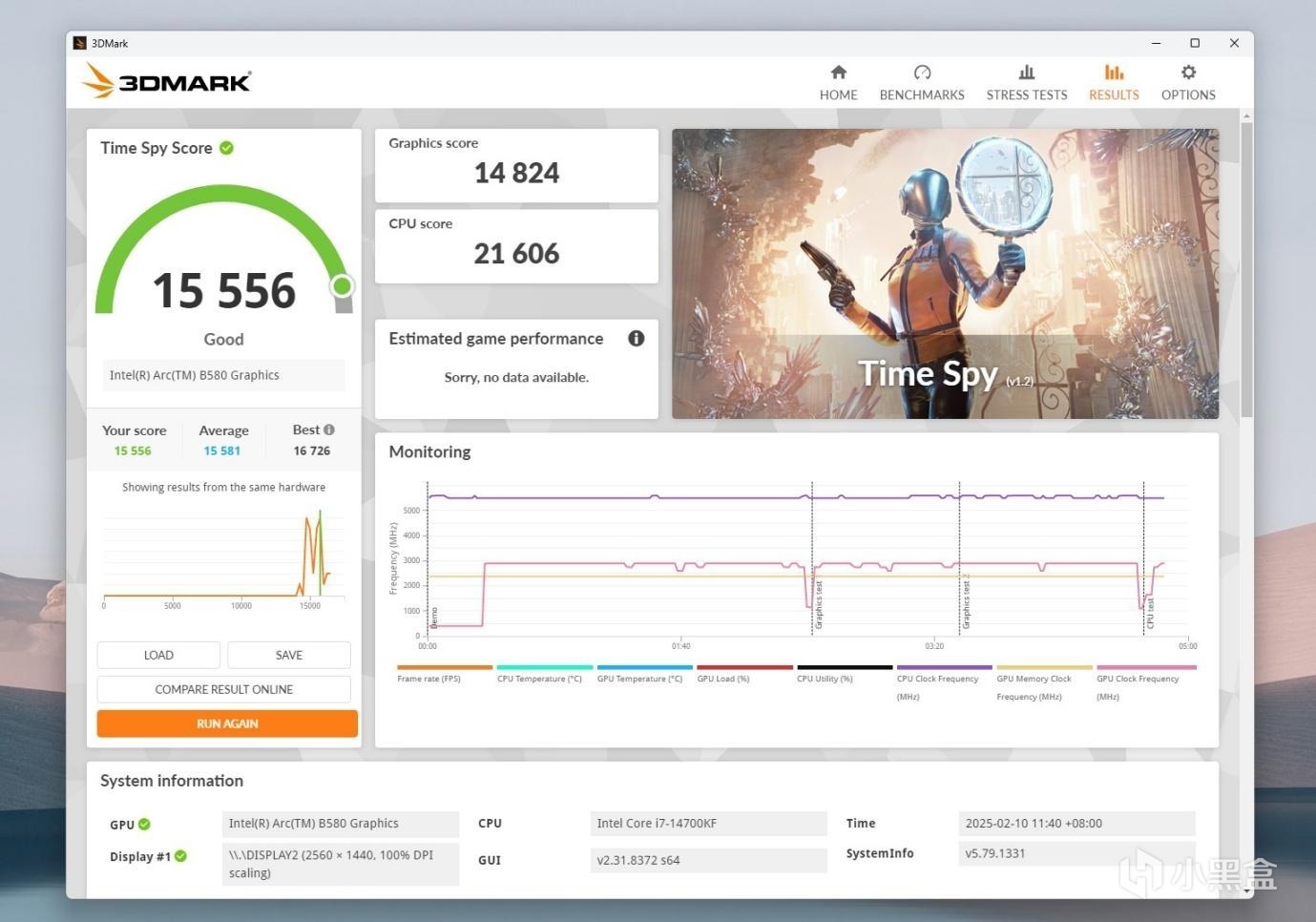 3DMARK Time Spy測試,總分15556,其中顯卡得分14828。