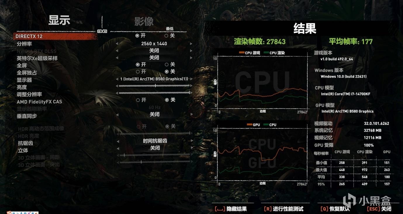 古墓麗影.暗影,2K分辨率高畫質,不開啓XeSS,平均幀率177。