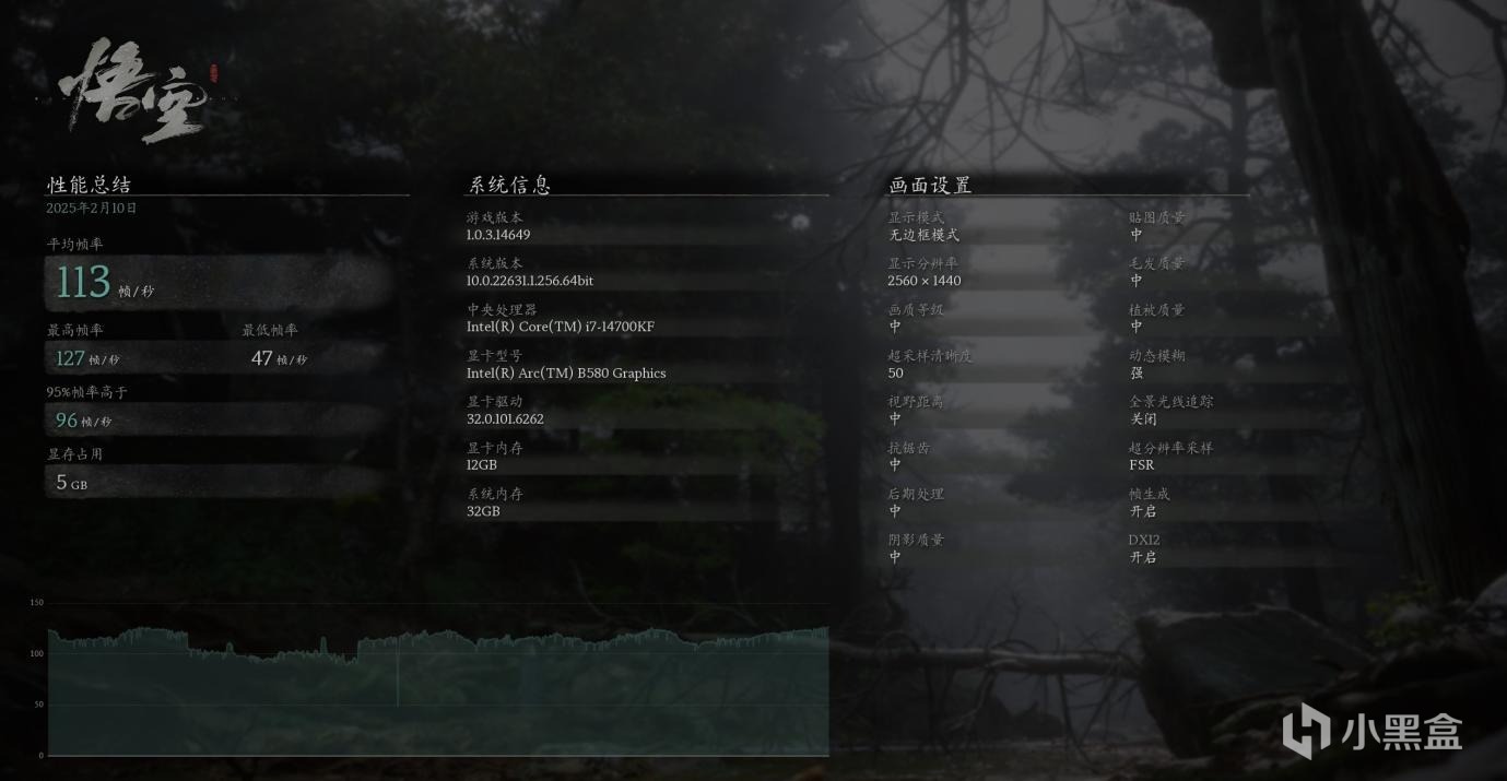 如果是開啓FSR,幀數113幀/秒。XeSS同FSR的原理不同,XeSS屬於AI,它的畫質要好於FSR。