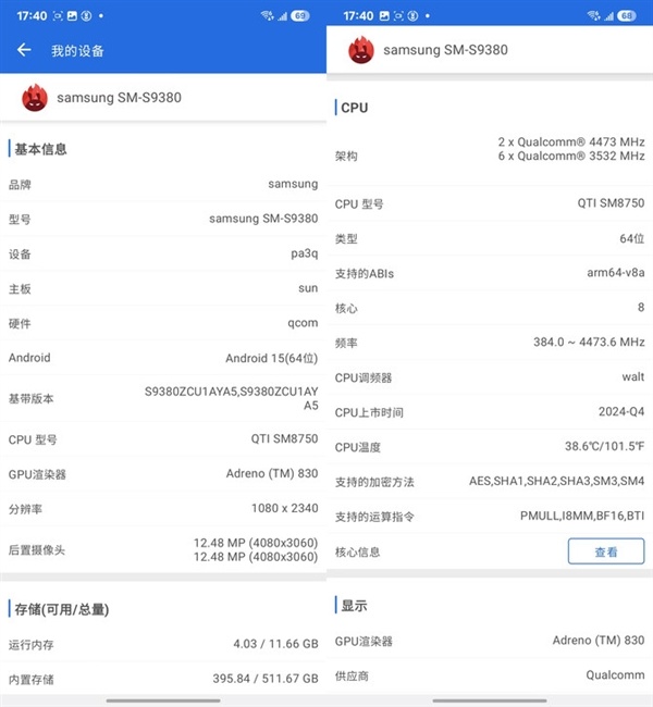 最後聊聊性能部分,三星Galaxy S25 Ultra搭載了驍龍8至尊版(for Galaxy)。參數上,CPU從4.32GHz提升到4.47GHz,GPU從1.1G提升到1.2GHz,理論性能比標準的驍龍8至尊版,還要更上一層。