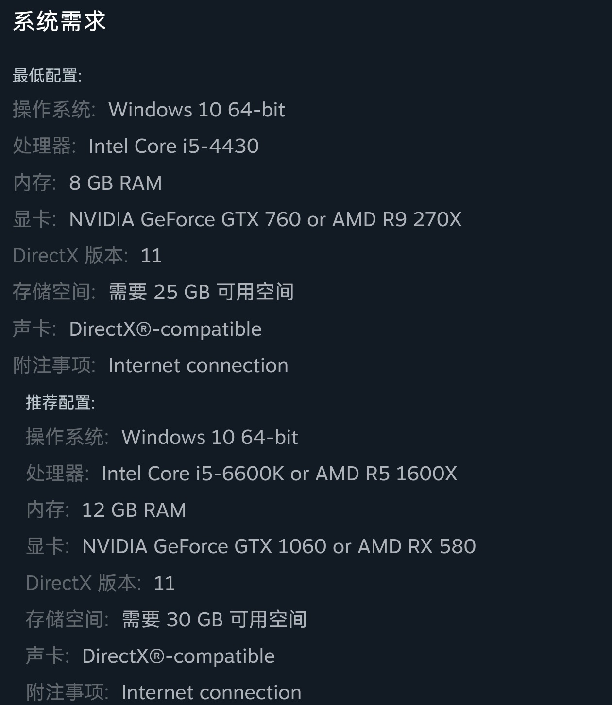 游戏配置要求: