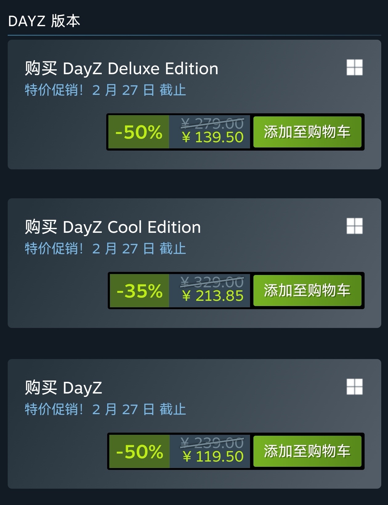 游戏各个版本的价格: