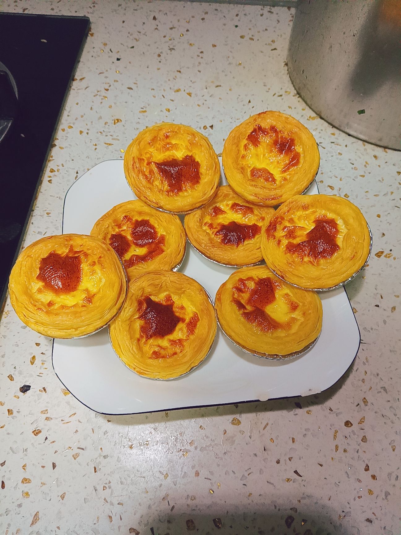 我早上做了13个,我老公跟两个孩子,把蛋挞全部消灭了,白米粥都没有吃完,儿子打电话过来,要求下午放学回来还要吃。我的蛋液还是有剩的。