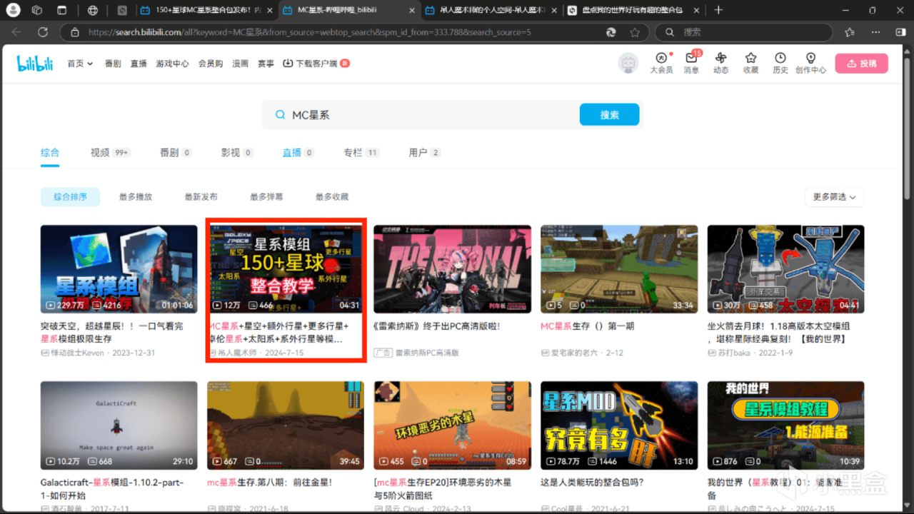 下載步驟1.B站搜索MC星系找到該視頻