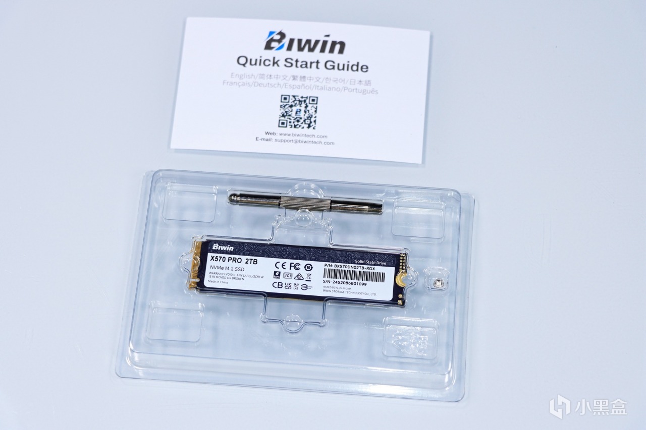 包裝盒背面都是簡略說明書,佰維 X570 PRO 天啓 2TB的背部還開了個透視窗,可以從這裏看到 SSD 的銘牌,清晰瞭解產品的型號與容量、傳輸模式。