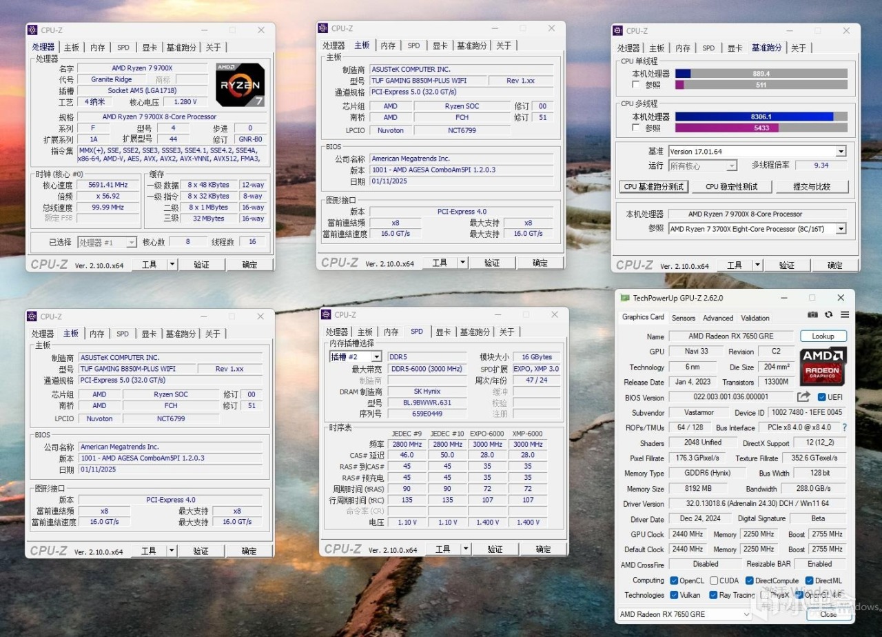 ▲ 9700X + 7650GRE 的 3Dmark Time Spy 系列測試成績。並不是說 7650GRE 不能用於 2K 分辨率或者 4K 分辨率,7650GRE 可以在這兩個高分辨率下當做普通的視頻輸出卡。