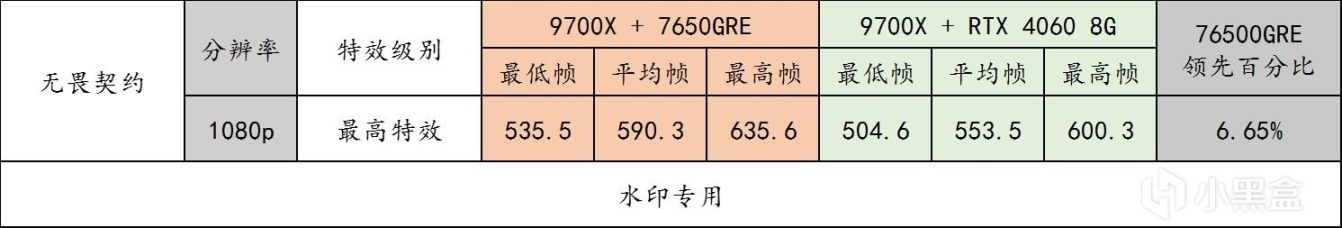 ▲ 無畏契約可說是目前最爲 CN 爭氣的項目了。測試採用訓練模式,實測,1080P 分辨率下,7650GRE 領先 RTX4060 8G 大概 6.65 % 。