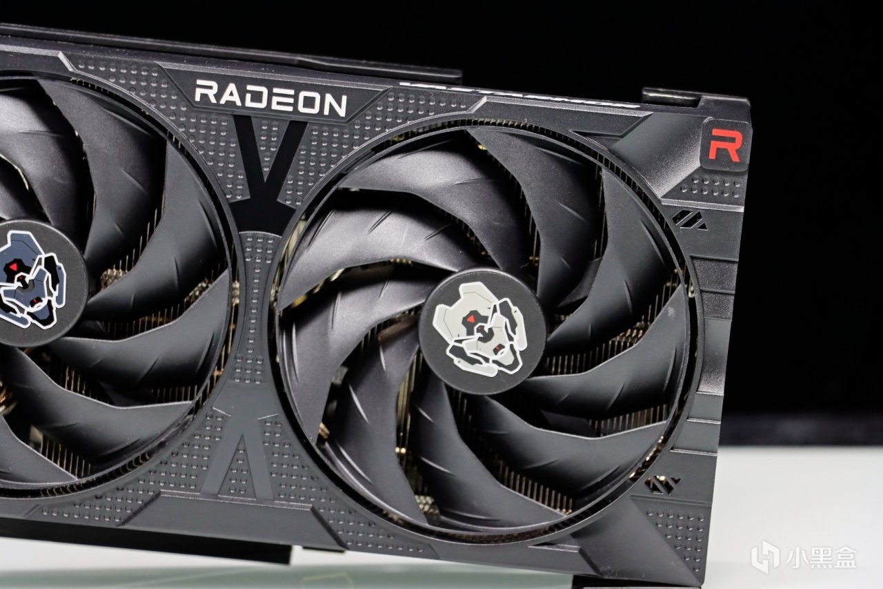 ▲ 超大的軸流風扇支持智慧啓停,在低溫下可以自動停轉,減少噪音。顯卡右上角有 Radron 的 R 標識。