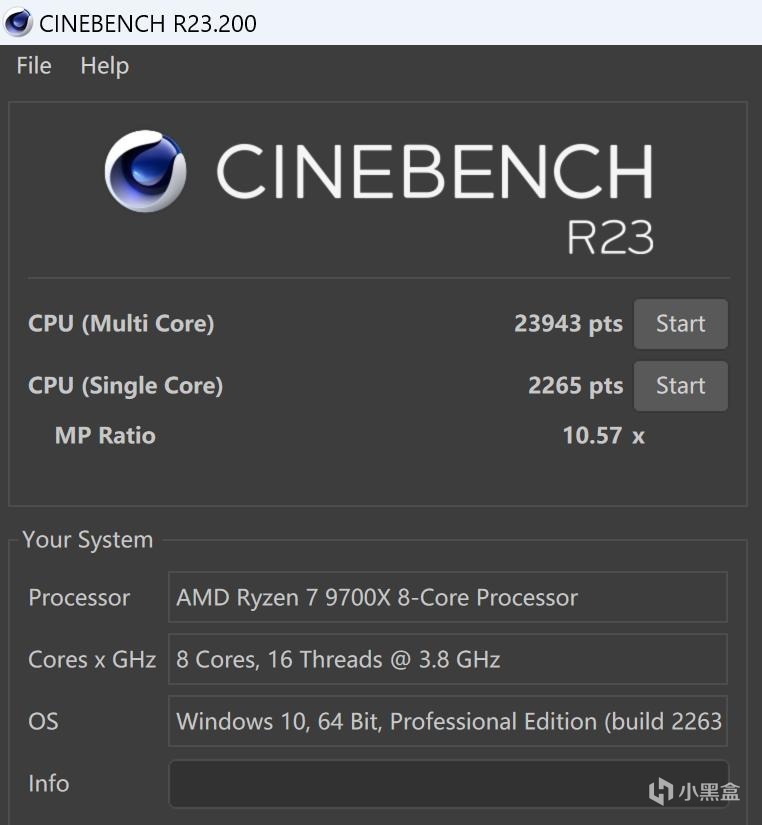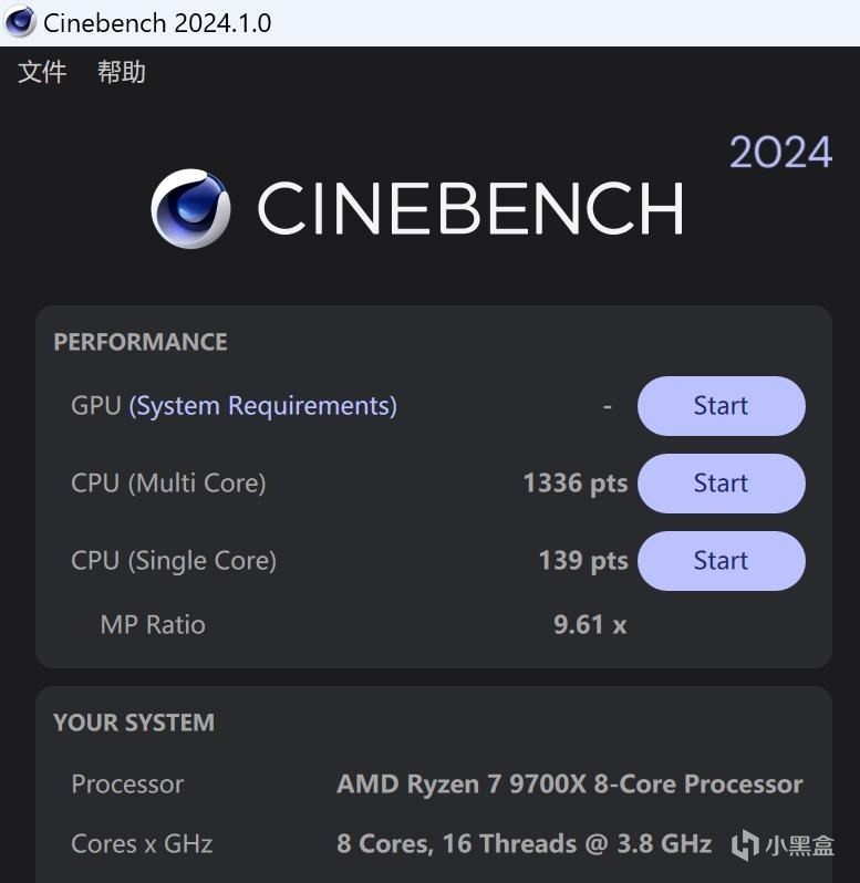▲ 9700X 搭配宏碁掠奪者 DDR5 6000 16G*2 C28 的 CineBench 2024 測試成績。9700X 可以說是目前性價比最爲出色的 CPU !