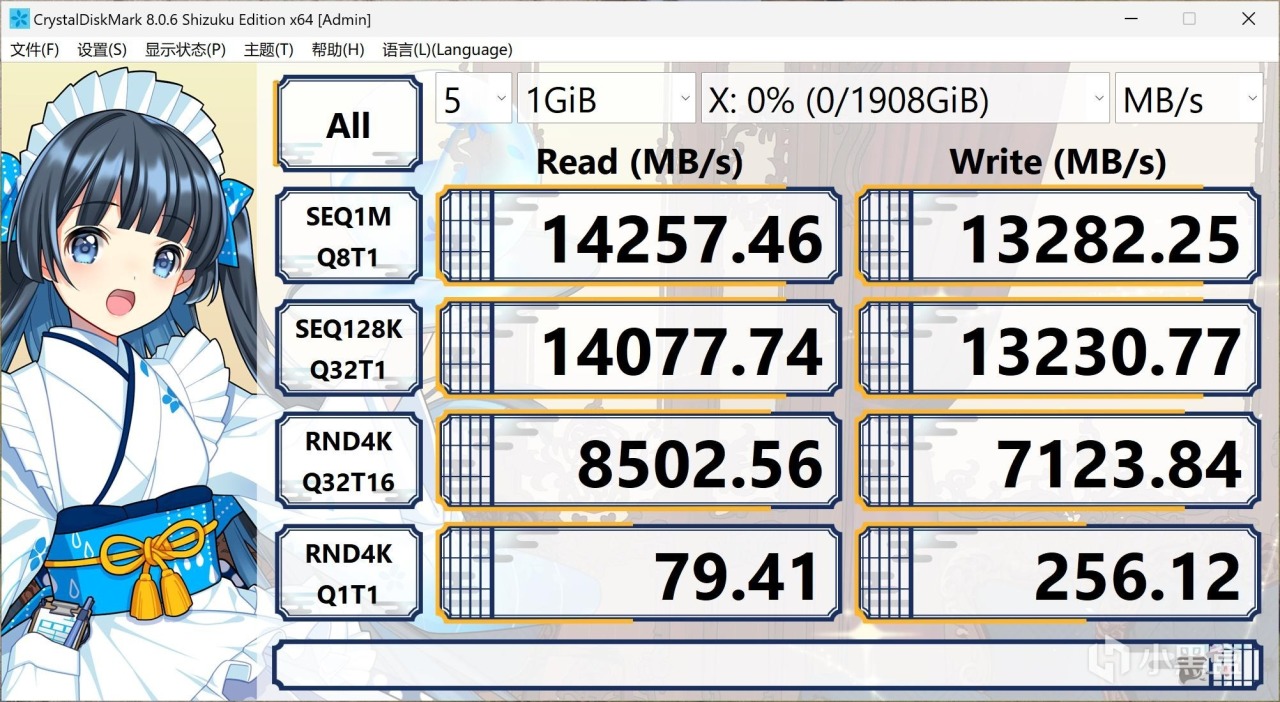 ▲ 實測證明,9700X + B850 + PCIe 5.0 X4 可以完美實現 14200 MB/s 以上的連續讀取速度,可以達成 13280 MB/s 以上的連續寫入速度。
