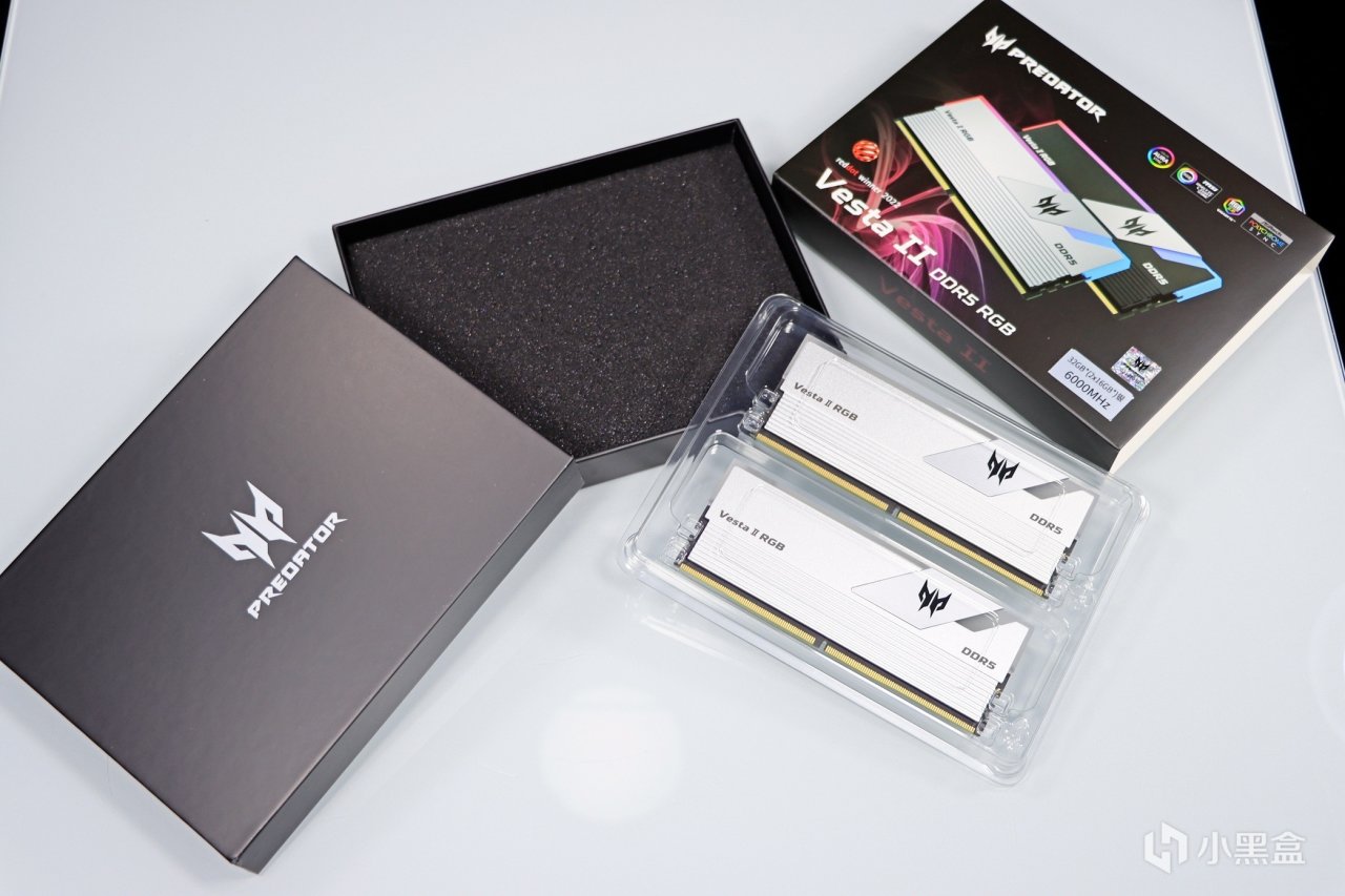 ▲ 宏碁掠奪者 Vesta II 炫光星艦 DDR5 6000 16G*2 C28 星光銀 RGB 的包裝盒採用厚實硬紙皮材質,整體堅固可靠,內裏採用減震海綿加以保護。