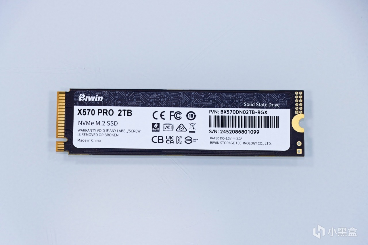 ▲ 產品背面只有銘牌貼紙,上面清晰標註產的型號、容量與傳輸模式,這也是產品的保修憑證。從這裏也可以看出,佰維 X570 PRO 天啓 2TB 採用的是單面 PCB 方案,可以讓散熱更加穩定可靠,也讓產品的兼容性大大提升。