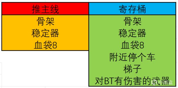 - 在心人那接到连接西部的主线任务后,装备换成加速骨架+稳定器+收纳袋,这样血袋可以带8个(医生大容量更好)带两组,骨架两组,可以对BT造成伤害的武器一组