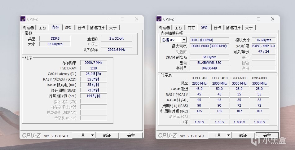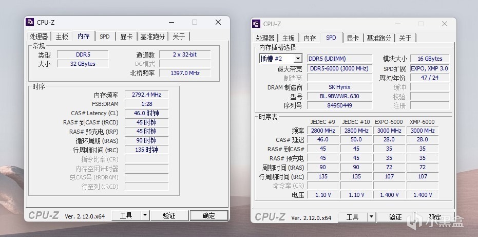 CPU-Z,看到內存已經工作在6000MHz的頻率,時序28-35-35-72。