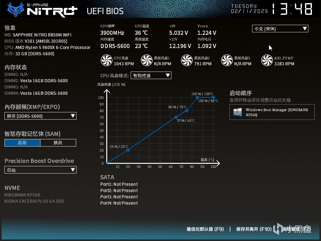 我們講AMD是比較有良心的,它的超頻還是很安全的。雖然是B850M主板,但依舊支持CPU超頻。當然,也支持內存超頻。我們來看看,通過這款藍寶石NiTRO+ 氮動 B850M WIFI主板,如何實現超頻提高性能,性能可以提高多少。