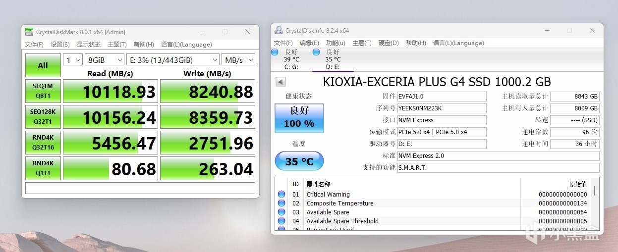 我們知道這款主板支持PCIe 5.0x4,使用CDM測試安裝的鎧俠PCIe 5.0硬盤,連續讀取10118.93MB/s,連續寫入8240.88MB/s,PCIe 5.0的速度果然超強。